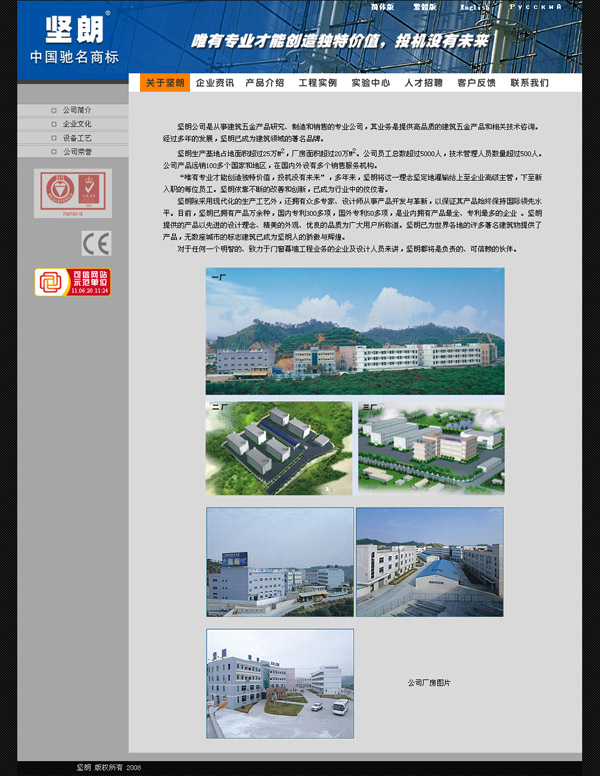 堅(jiān)朗生產(chǎn)基地占地面積超過(guò)25萬(wàn)M2,廠(chǎng)房面積超過(guò)20萬(wàn)M2。公司員工總數(shù)超過(guò)5000人,技能管理職員數(shù)目超過(guò)500人。公司產(chǎn)物遠(yuǎn)銷(xiāo)100多個(gè)國(guó)度和地域,在國(guó)表里設(shè)有多個(gè)販賣(mài)服務(wù)機(jī)構(gòu)。