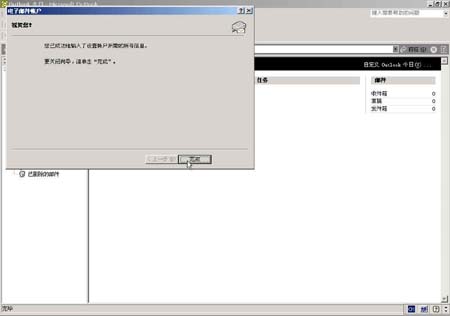 7.點(diǎn)擊“完成”后,整個(gè)設(shè)置過(guò)程就結(jié)束了,完成以上設(shè)置之后,您就可以單擊窗口中的"發(fā)送接收"工具按鈕進(jìn)行郵件的收發(fā)了。