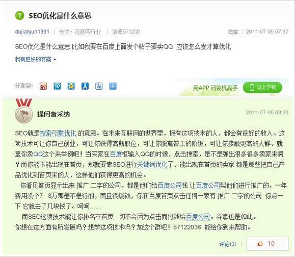 4. 看到這些我們想的不是說百度是不是不公平,是不是只許州官放火,不許百姓點(diǎn)燈的情況,大家要是這樣想就錯(cuò)了!大家看看為什么百度知道會(huì)這樣調(diào)整!意義在那里?我們可以借鑒什么?為什么我們做seo做搜索引擎優(yōu)化,不在搜索引擎中去了解他的東西 他的變化 他的發(fā)展,以及他的創(chuàng)新和改變,孫子兵法沒有教我們 知己知彼嗎?多的不說了!說多了不招人待見!有其他見解可以私下找我!一起探討!