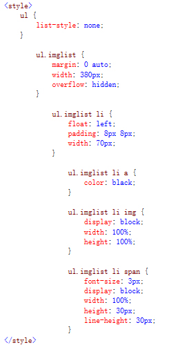 4)、ul.imglist li span{ display:block; width:100%; height:30px; line-height:30px; background:#F6F6F6}