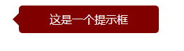 <!DOCTYPE html> <html> <head> <meta charset="UTF-8"> <link rel="shortcut icon" href="resources/img/logo-color.png" type="image/x-icon"> <title>測試</title> <style> .out-div { color: #FFFFFF; font-size: 16px; line-height: 40px; display: inline-block; height: 40px; width: 200px; text-align: center; border-radius: 5px; margin-left: 32px; vertical-align: top; background-color: maroon; } .arrow { width: 0px; height: 0px; border-top: 10px solid transparent; border-right: 10px solid; border-bottom: 10px solid transparent; position: absolute; margin-left: -10px; margin-top: 10px; border-right-color: maroon; } </style> </head> <body> <div class="out-div"> <div class="arrow" ></div> <span>這是一個(gè)提示框</span> </div> </body> </html>